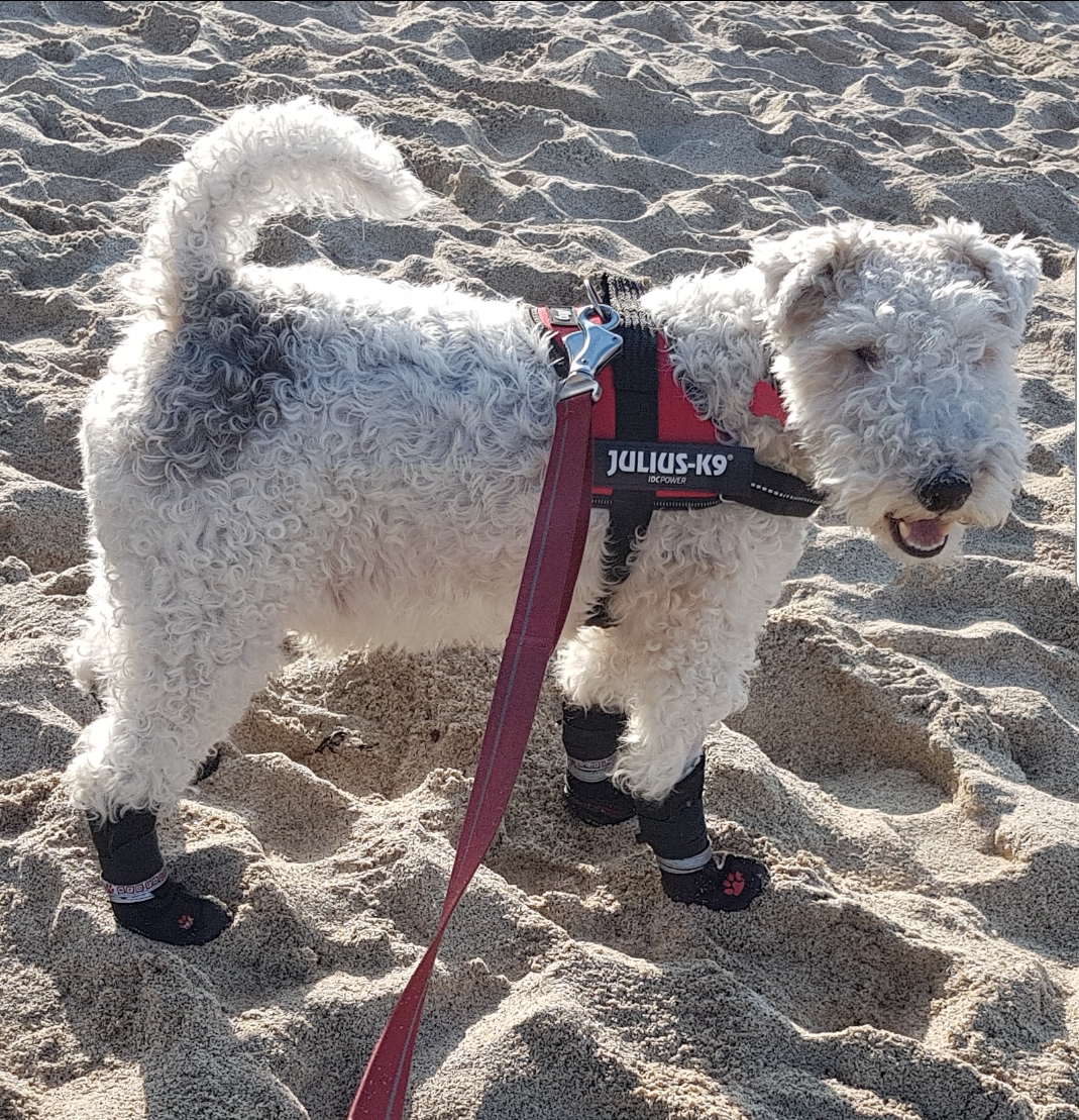 🐶💛⛱Spot looking rather dapper in his little boots.. ….looks like he’s ready for a surf! 🌊🐕He is such a lovely little fellow….a bit bossy on his walks mind….hence the name Bossy Boots! 🐾🐾⚾️💧His mum says he likes mucking about on the grass verges alot..sniffing at all the weemails 🐶🌿💛😍
