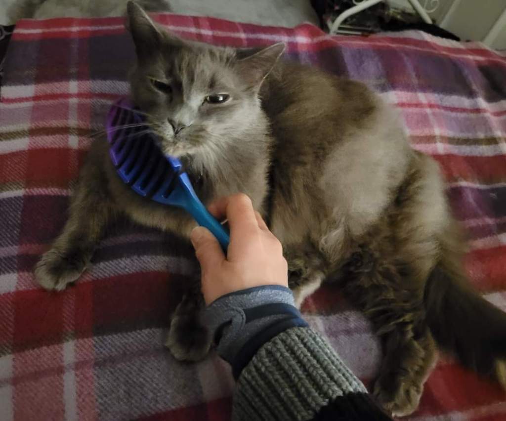 🐱💛Chloe 🐟🐔 enjoying her meat treats and loves being brushed and pampered 💛🥰🐾