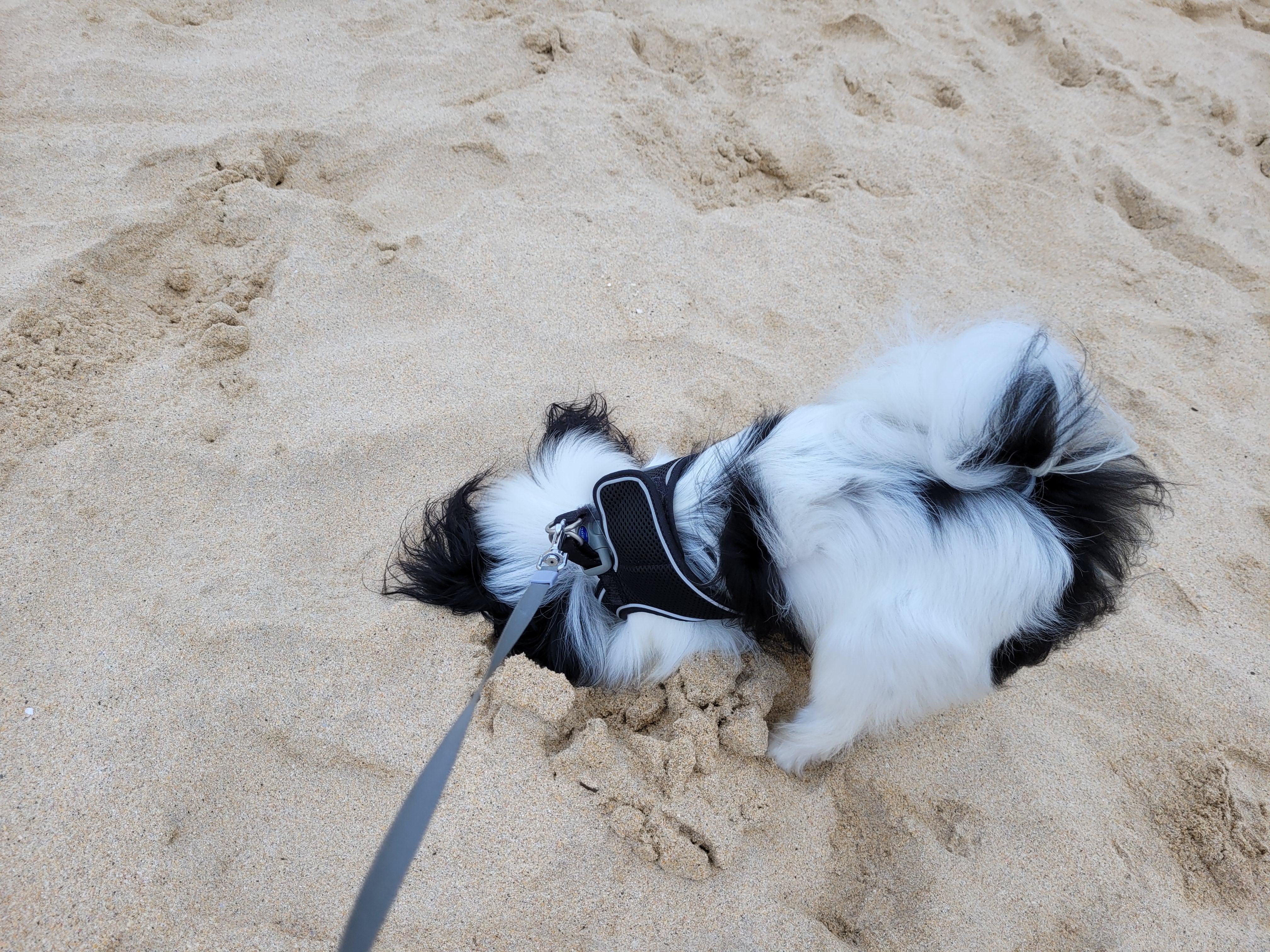 🐶💙Archi digging..and head in ⛱️🌊🏀🐾