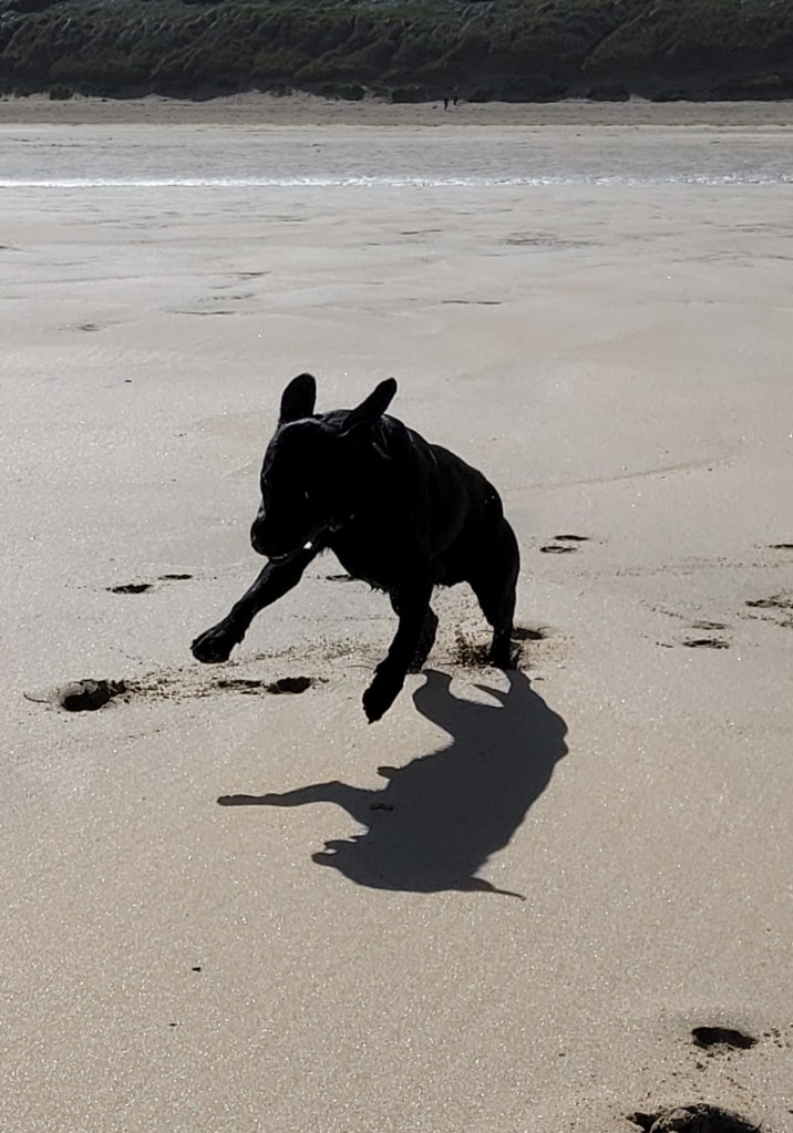 ⛱️🌊💛🐕 Happy Pup..Finn racing around on the beach having fun and a splish splosh about in the sea💧🏀🐾