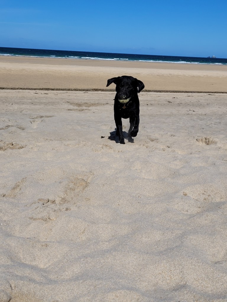 🐶💛🏀Finn enjoying playing fetch on the beach💧🌊⛱️