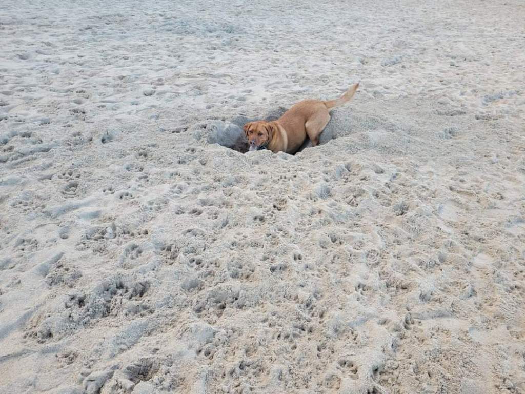 🐶💛…..🥎⛱️. Teddy is going in so deep…thought we may have to call the fire brigade…. 🐾🌊😟