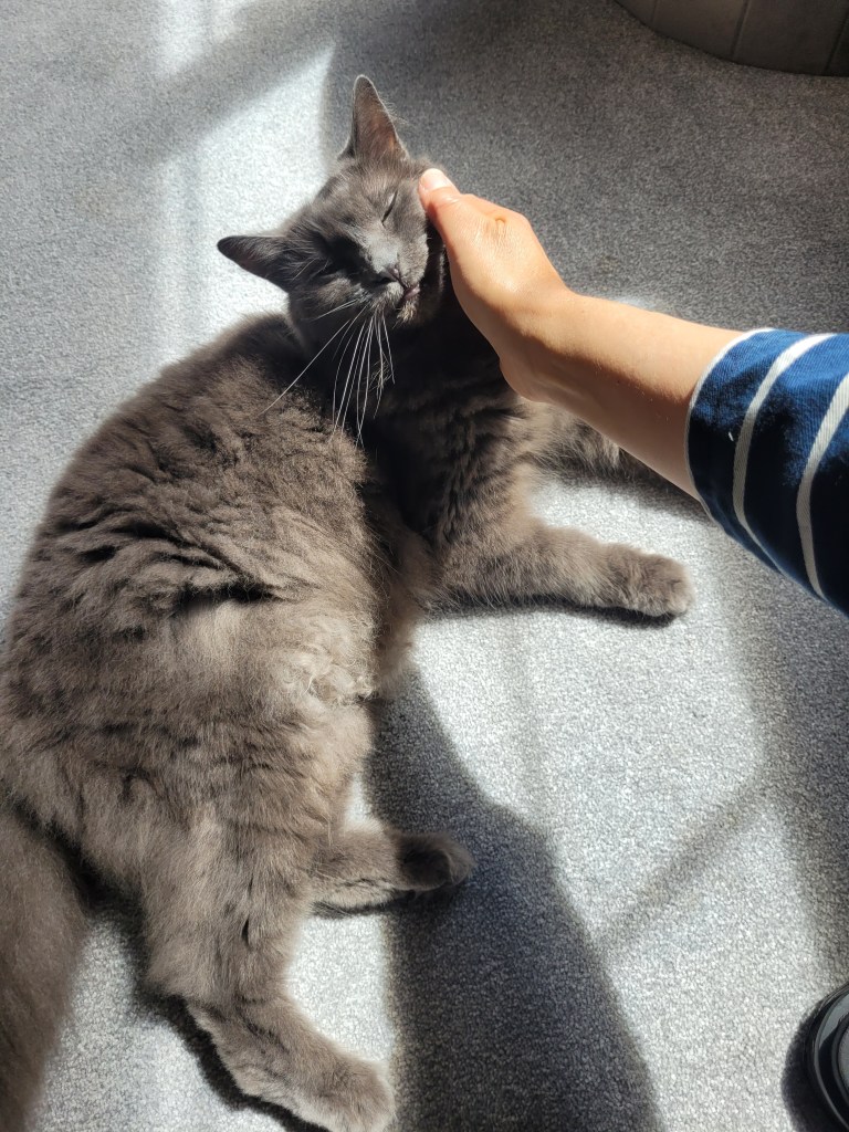 🐱💕Chloe enjoying some pampering and love ..enjoyed her beef and tomato dinner, brush ‘n’ cheek rub.. 🐂🍎🐾😍
