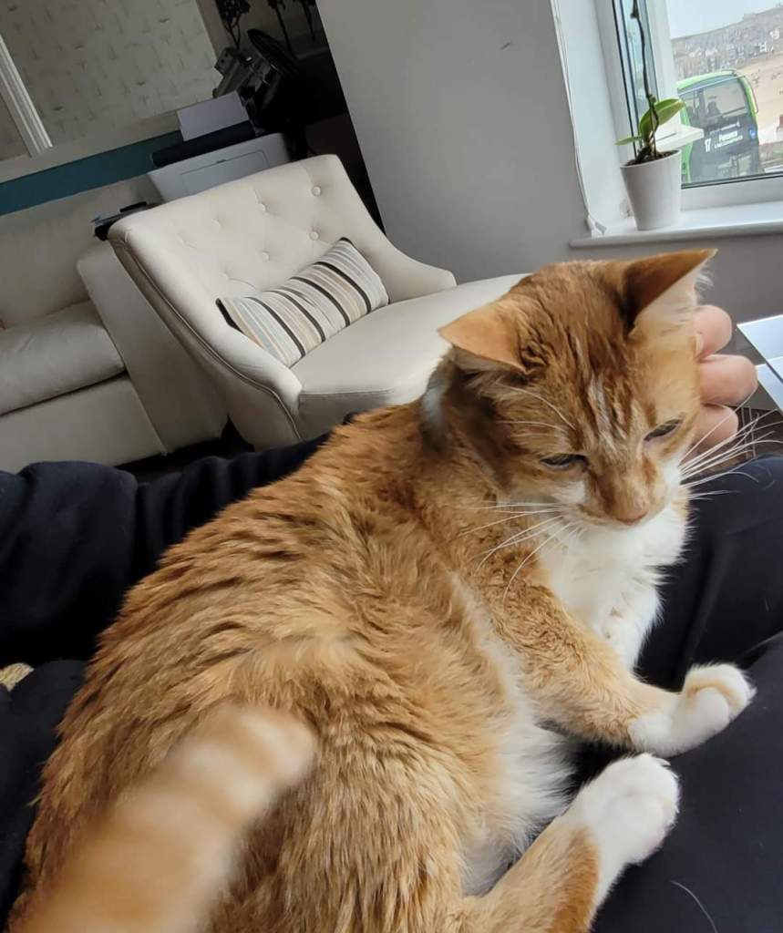 ๐Ÿฑ๐Ÿ’›๐Ÿฑ Mini happy being pampered with cheek rubs, head massages, and chin rubs….๐Ÿ’•๐Ÿพ๐ŸŸ๐ŸŽฃ๐Ÿ˜