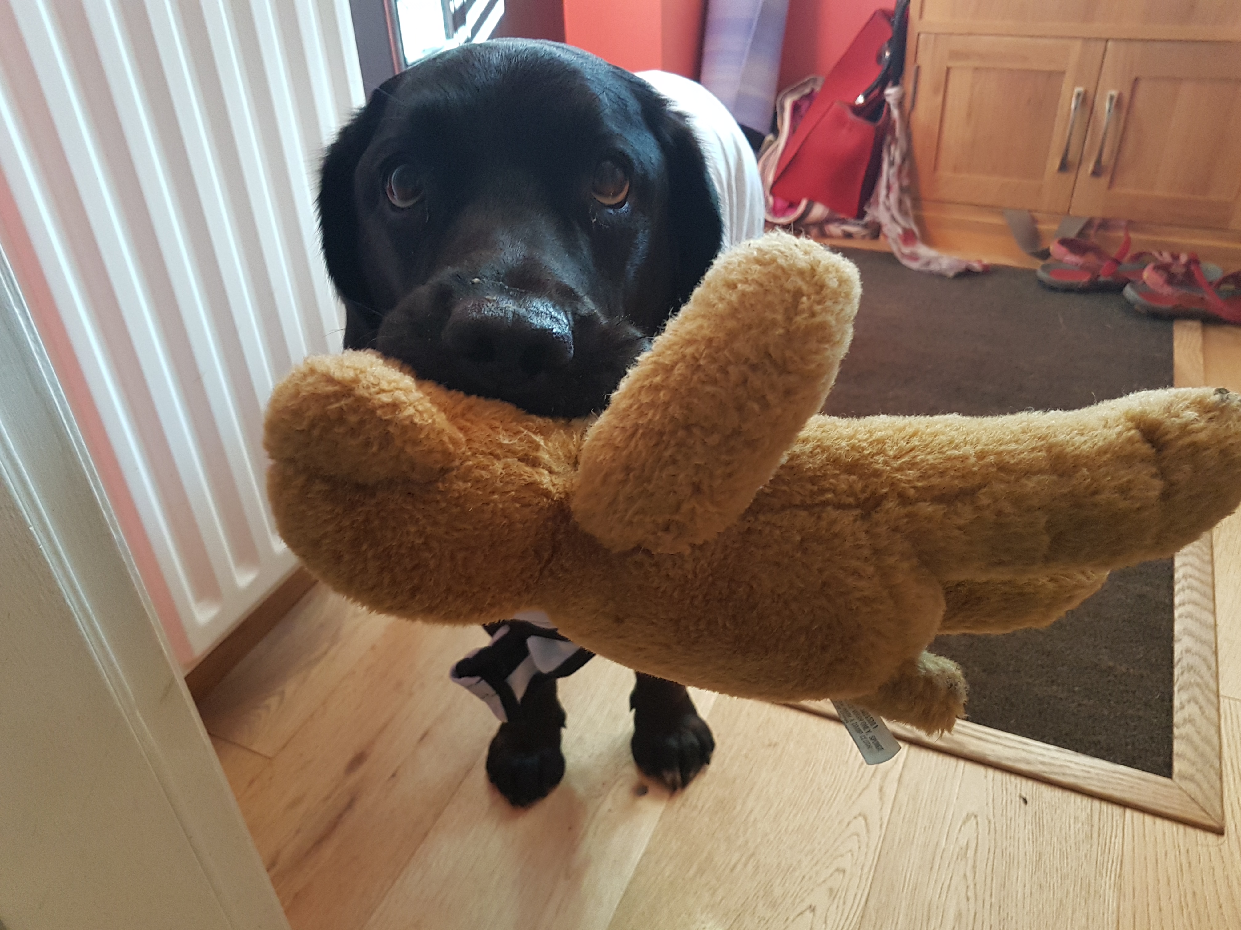 πΆπ·πΎ πFELLA…I have found that gently blowing his nostrils completely baffles him as he is only 6 months old, and does not quite knows whats going on….and this makes him drop his toys, so I can play fetch and wrestle with him with them again π¦β½οΈππ